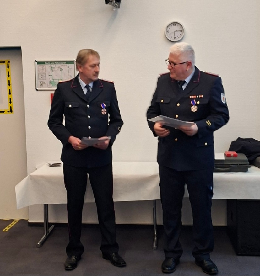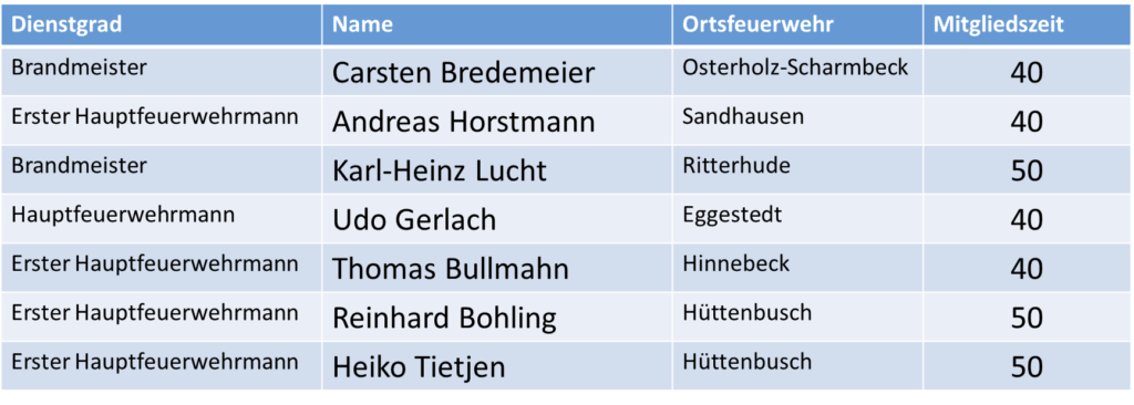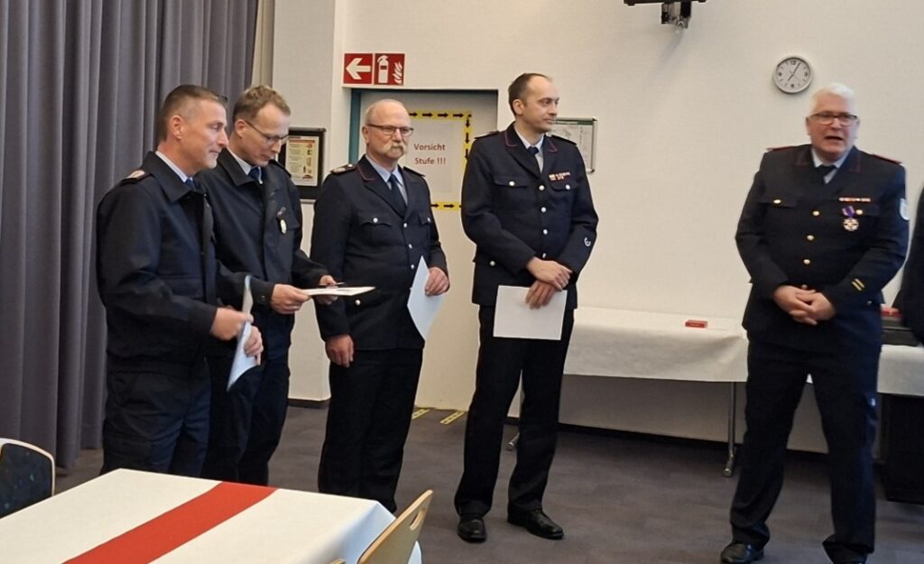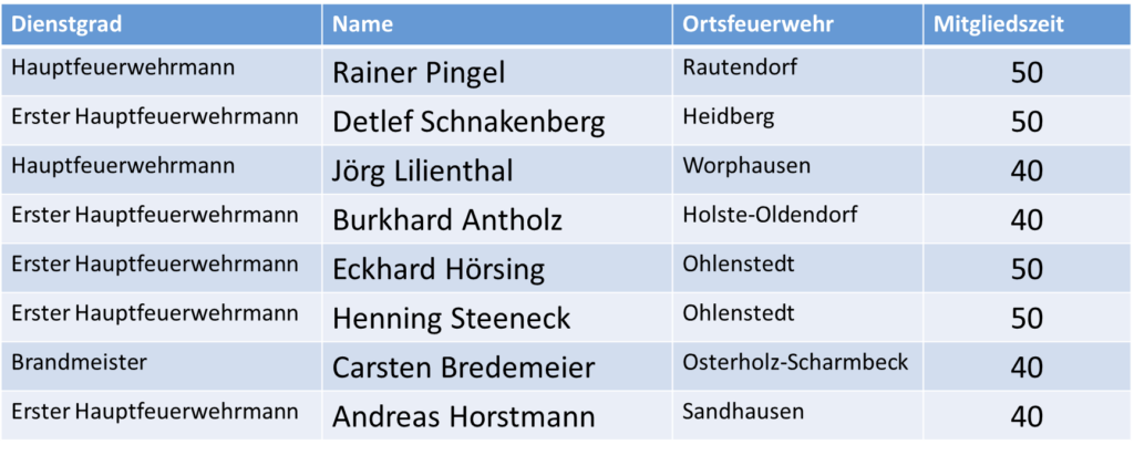 Folgende Kameraden wurden vom Landrat Bernd Lütjen für ihre langjährige aktive Mitgliedschft in der Freiwilligen Feuerwehr geehrt: