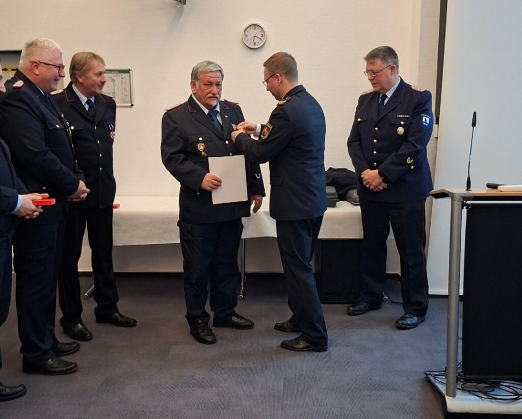 Im Anschluss wurden durch den Verbandsvorsitzenden Jan Hinken Ehrenzeichen des Deutschen Feuerwehrverbandes verliehen.